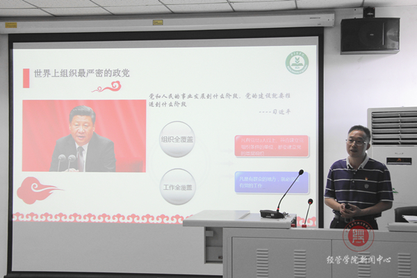 时值建党九十七周年来临之际,为全面学习、认知党的成长历程,williamhill英国威廉希尔于6月28日组织召开中心组扩大学习会议,公司纪委书记李伟书同志为公司师生党员积极分子作了题为《厉害了,我的党》专题党课,公司班子成员,基层党支部书记,工商教师党支部全体党员、非党员青年教师,会计本科生党支部在校生党员和积极分子参加了此次学习,学习会议由党总支书记胡宝贵主持。