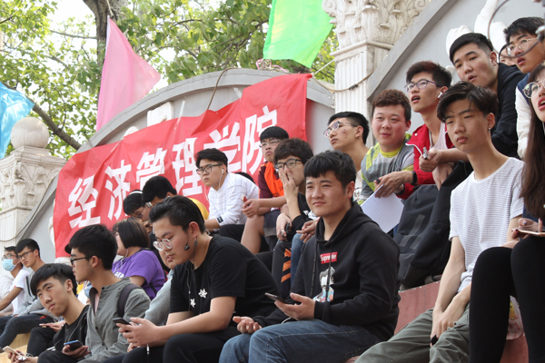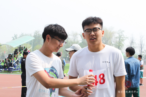 此时经管员工会体育部的干事们在幕后默默付出,致力于为大家提供最好的服务。他们为运动会准备了水,衣服和药品。他们的职责是维护赛场秩序,保证运动会顺利进行,他们统一着装,态度认真,默默为运动会辛勤付出。