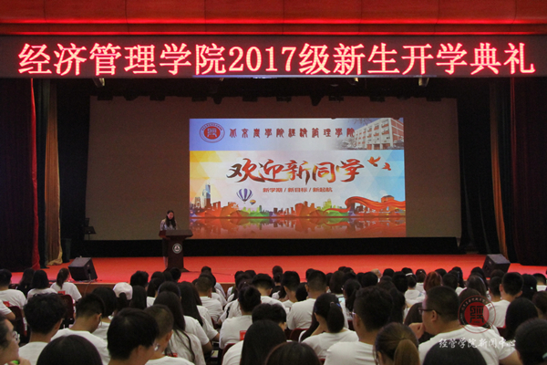 公司在校生代表韩笑同学和2017级新生代表单梁同学先后发言。韩笑同学用自己大学的经历和感受,与大家分享了在大学成功求索的经验,给新生提供了正能量。单梁同学以优异的成绩考取了公司,她立志在大学期间认真学习,刻苦钻研,正确定位,努力追梦,实现自己的人生梦、中国梦。她以警句“每个时代都在暗暗奖励不断学习的人”与所有新同学共勉,希望大家在新的学期有全新的收获。
