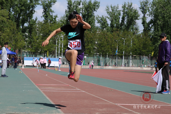 在女子三级跳这个比赛项目中,各位女同学也展现了她们的风采。一阵有力的助跑后,只见她们的身体向前冲去,眼神坚定的看着前方不远处的沙坑,三下强有力的弹跳之后落入沙坑,在落地的瞬间制造出一段属于她们自己的距离。最终,王美琪以8.9米取得第二名的优异成绩,另一位经管选手张浩然面对前两次失利,积极调整,以8.4米取得第三名的好成绩。