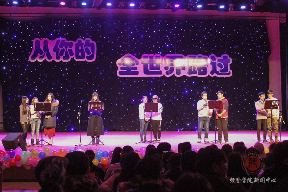 表演期间,还有激动人心的抽奖环节,经管十大歌手也到场前来助兴,为在场师生带来了一曲《歌曲串烧》,轰动全场,整个晚会仿佛一片欢乐的海洋。