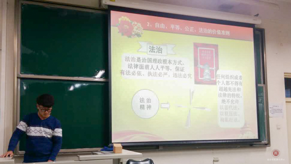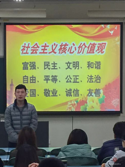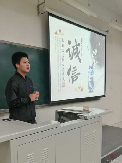 16级的市营专业,他们就社会主义核心价值观中的诚信做了讨论,同学们积极查阅资料,为诚信寻找新时期的代言人,例如诚信经营的商人,几十年如一日做好自己的经营,不欺骗消费者,来自身边的例子让同学们对社会主义核心价值观有了更深层次的体会和理解。