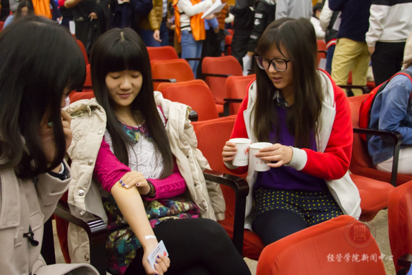 15级辅导员古丽老师向同学们耐心的讲解献血注意事项,并安抚同学们的紧张情绪。副经理赵金芳老师等也给同学们带来鼓励和安慰。