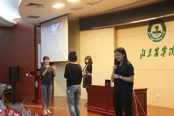 在心有灵犀环节,每队选出三位选手参赛。以你画我猜的形势进行,最后以准确猜出单词及意思则该队记一分。比赛在轻松愉悦的气氛中进行,选手们的一颦一笑、一举一动伴随着台下观众的笑声,让整个场面欢快了不少,比赛最终有六个队伍晋级到下一轮的比赛。