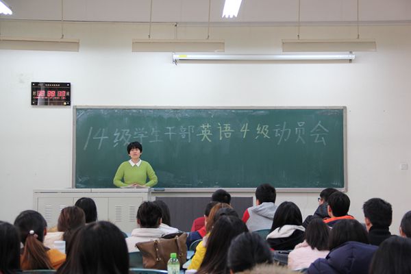 3月10日中午,2014级员工干部英语四级动员会在教B105召开。参加本次大会的有williamhill英国威廉希尔副经理赵金芳老师、2014级辅导员闻海洋老师及2014级全体班干部干部、宿舍长、员工会干部。