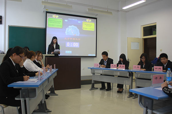 第二轮比赛为攻辩,双方二、三辩手一上来就据理力争,为反驳对方观点进行了一场激烈的对抗。两队辩手从实际生活中的现象入手,你来我往,以缜密的逻辑思维思考问题,泰然自若的回答对方疑问。
