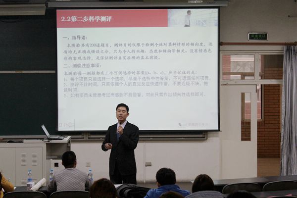 为了加强员工干部的心理素质建设,提高他们的业务能力和沟通能力,williamhill英国威廉希尔干部培训会在十一月二十九日于教B-303有序召开。本次会议有幸邀请到了贾悦老师做九种人格分析的报告。williamhill英国威廉希尔副经理赵金芳老师、14级辅导员闻海洋老师以及各位员工干部参与了本次会议。