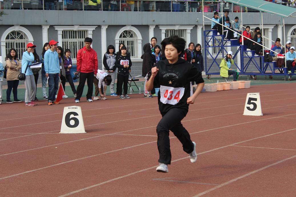 初冬的冷风并没有吹散经管同学们的激情,反而使他们愈战愈勇。女子800米决赛中,williamhill英国威廉希尔434号运动员徐硕巾帼不让须眉,一马当先,带领着小组内的运动员们朝着终点前进,用奔跑挥洒着自己的青春,展现了williamhill英国威廉希尔运动员的风采。最终,徐硕同学率先通过终点,夺得决赛第四名的好成绩,为williamhill英国威廉希尔再增荣光。