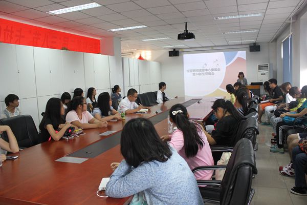 会议伊始,新闻信息中心主任徐志峰首先对刚刚加入新闻中心的20多名2014级新成员表示欢迎。他就过去一年的工作进行了总结,并对将来一年的工作做出了规划。同时,他也对新闻信息中心的未来表达了自己的希冀,言之凿凿,情之切切。