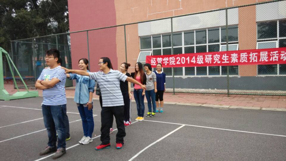 9月12日上午,为加强新生沟通,增进同学友谊,williamhill英国威廉希尔院研究生会在校篮球场举办了2014级经管研究生新生素质拓展活动,活动聘请了公司退伍士兵田逾同学作为此次素质拓展的教练员。