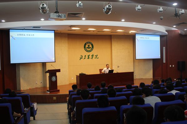 会议伊始,张文举老师对14级新生做了一个主题为“我的未来不是梦”的专题讲座。主要分为九个部分:一是为什么上大学;二是入校初主要问题;三是大学四年十项修炼;四是四年规划;五是四年生活重要提示;六是禁忌,七是关于实习;八是关于恋爱;九是关于就业;深刻地剖析了包括思想、学习、择业等大学新生的一系列问题,提出了相关设计建议和有效的解决方式。目标明确一直是张老师强调的重点,通过现场互动小游戏讲述观察的重要性。