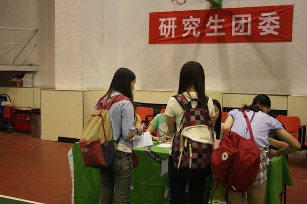 篮球馆前,负责研究生迎新的志愿者们忙碌的身影一大早就出现了。他们详细地为新生讲解报到流程、办手续地点、校园路线等问题,任务繁重且杂乱,可这并无法击退他们迎接新同学的兴奋之情。阳光下,他们额前汗珠反射出的点点亮光,混杂着他们的笑脸,成为了一道最亮丽的风景线。