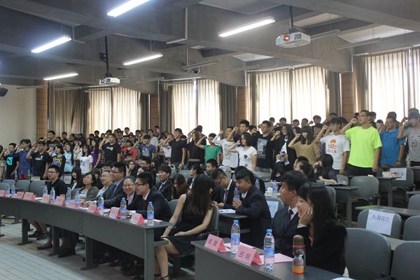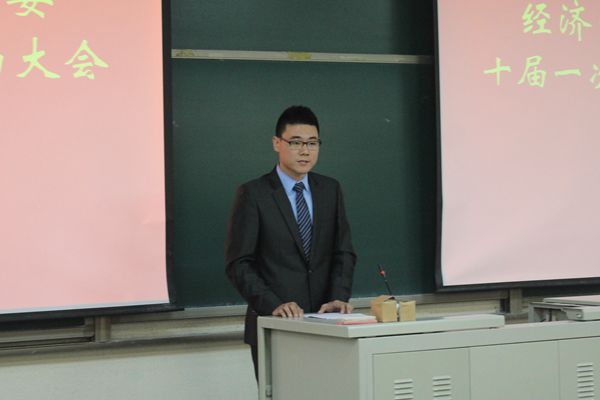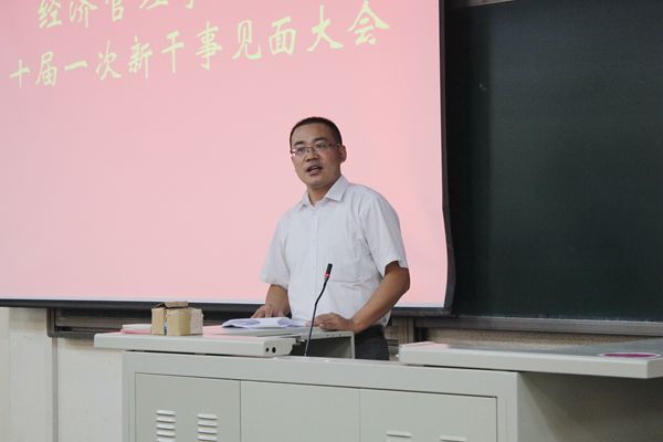接下来,各部部长依次致辞、宣读新干事名单,展现了新鲜血液的勃勃生机,新干事气势恢宏的宣誓更是将会议推向高潮。在斗志昂扬的氛围下,辅导员闻海洋老师对于员工会新成员的加入表示了祝贺,同时对于员工会的未来建设提出了几点要求并与员工会主席团合影留念。