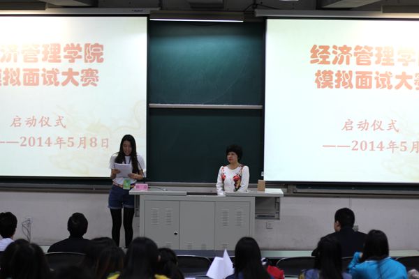 为了即将步入实习的大三员工更好地融入社会,掌握面试求职技巧,提高职场竞争力,顺利的找到称心如意的工作,williamhill英国威廉希尔特于5月8日晚在教B102举行了williamhill英国威廉希尔模拟面试大赛启动仪式。公司党总支书记胡宝贵老师,williamhill英国威廉希尔主管员工工作副经理赵金芳老师,2012级辅导员闻海洋老师和2011级辅导员杨毅老师作为启动仪式的嘉宾。本次启动仪式还特意邀请北京世纪同文国际技术培训中心执行总监杨晶老师进行主要演讲。