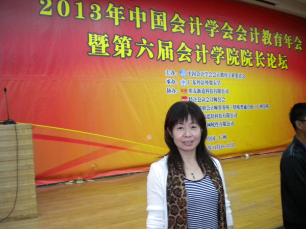李瑞芬教授于11月15日应邀参加了由中国会计学会会计教育专业委员会主办、广东外语外贸大学财经公司承办的“中国会计学会会计教育专业委员会2013年年会暨第六届会计公司经理系主任论坛”。本次会议的中心议题包括:会计学专业人才培养与教学改革问题研究;会计教育的国际化等。通过论坛和同行交流,得到很多启发,尤其是会计教育国际化问题。