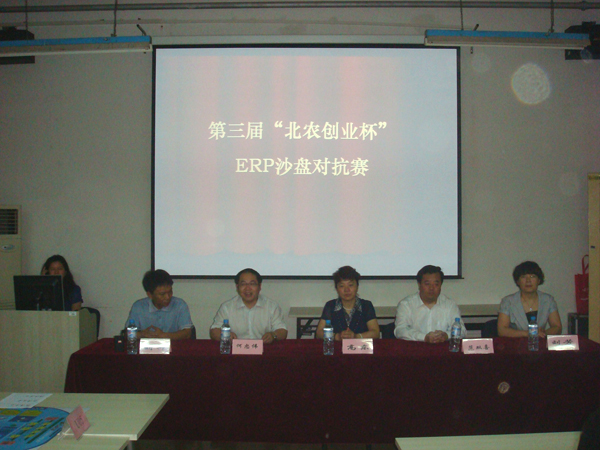 北农“创业杯”ERP沙盘对抗赛依托全国老员工创业设计暨沙盘模拟经营大赛和《企业经营决策沙盘模拟》课程建设,2007年,公司首次举办第一届北农“创业杯”ERP沙盘对抗赛,并选派代表参加“‘用友杯’第四届全国老员工创业设计暨沙盘模拟经营大赛”。2008年,举办第二届北农“创业杯”ERP沙盘对抗赛,并参加全国大赛北京地区预选赛,获得“优胜奖”。自2007年ERP沙盘对抗课程开设以来,得到校、院领导和职能部门的大力支持,先后为700多名同学开设本课程,200余名同学参加赛前培训与比赛。课程组教师积极进行课程建设。围绕该课程进行教改研究、网络课程建设,2009年,该课程被评为校级优秀课程,该课程的扩展课程有:公司理财与经营模拟、企业认知与经营模拟。