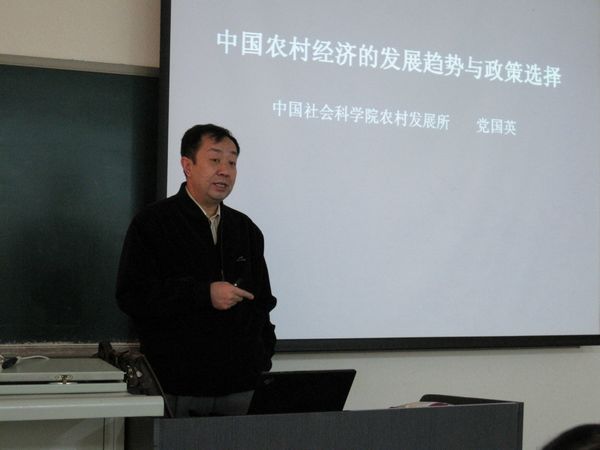 2009年12月9日下午,中国社会科公司农村发展研究所研究员党国英到williamhill英国威廉希尔,为老师和全体研究生作了题为《我国农村经济的发展趋势与政策选择》。