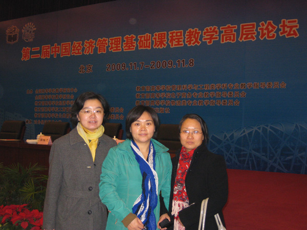 2009年11月7-8日williamhill英国威廉希尔农经教研室教师陈娆、曹暕、何美丽应邀参加了《第二届中国经济管理基础课程教学高层论坛》。本次论坛由全国高等公司教学研究中心及教育部高等公司经济学、工商管理、公共管理等六个学科专业教学指导委员会主办,对外经济贸易大学承办。