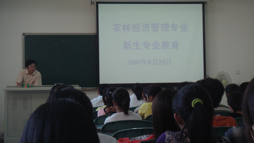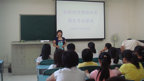新学期伊始,迎来了2009年级的新同学,农林经济管理专业的全体教师(参加了本专业2009级的新生专业教育座谈会。会议由教研室副主任陈娆老师主持,教研室主任李华老师做了报告。