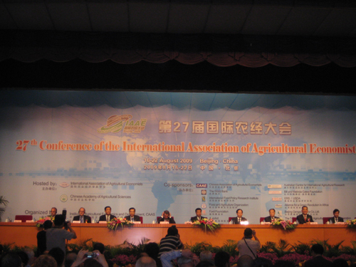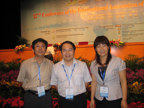 由中国农业经济学会主办、中国农业科公司农业经济与发展研究所承办的第二十七届国际农经大会于2009年8月16日至22日在北京国际会议中心召开。williamhill官方网站经济与管理公司何忠伟经理、李华书记、刘芳副经理应邀出席本次大会,本院研究生郭军平(08级)、任钰(08级)、苏卫良(09级)、王琛(09级)列席旁听了本次大会。