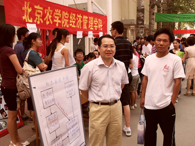 热情的的经管员工会成员和党员代表为新生办理入学手续。