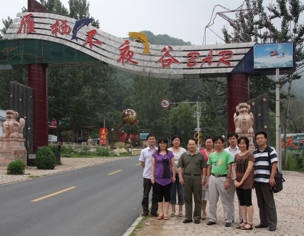 2009年7月23日,williamhill英国威廉希尔沟域经济课题组一行十人赴怀柔渤海镇、雁栖镇调研。“夜渤海”南起关渡河,北至慕田峪环岛,全长7.5公里,两侧丘陵浅山均为板栗、核桃、苹果、樱桃等果品种植园。雁栖镇位于北京市怀柔区城北4公里的长城脚下,全镇总面积154平方公里,21个行政村,全镇劳动力6171人。“夜渤海”、“雁栖不夜谷”利用丰富的山区生态资源,通过建设旅游休闲项目,创新了沟域经济发展模式。