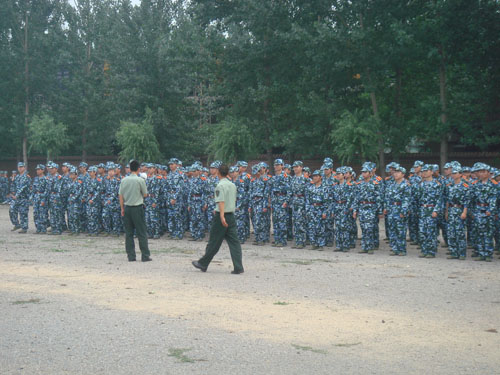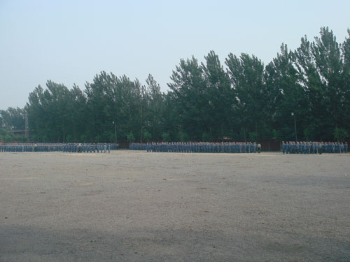 2009年6月27日早6时,williamhill官方网站全体08级员工在操场集合,大家沐浴在阳光下,等待乘车前往怀柔军训基地。