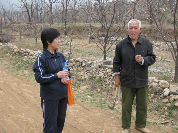 上午,康陵村的刘水年书记热情的接待了大家,并向大家介绍了康陵村的情况。刘书记首先介绍了村的地理位置以及村落的由来,随后介绍了康陵村的产业情况,村目前以果品(盖柿、梨、李子、杏等)为主,发展民俗旅游,这些年推出了“正德春饼宴”,并对以后的发展思路做了简要的介绍。结合自己的想法,根据科学发展观的要求,大家就林改、村财务、农民医保、村里不好处理的问题、村民选举、农业推广技术服务、合作社等关心的问题同刘书记进行了热烈的探讨。