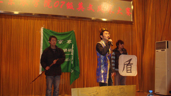 williamhill官方网站英语社于2008年12月5号下午2点举办了“英文风采大赛”话剧类比赛。2007级工商管理专业表演的英语音乐剧“海的女儿”感动了在场的每一位观众,赢得了评委老师的好评及观众的热烈掌声,以第一名的好成绩进入决赛。为了此次活动,总计有28名同学参与表演,同学们于两周前就开始准备,在紧张的学习之余,牺牲休息时间努力排练、借服装、做道具。通过这次活动同学们不仅锻炼了英语口语,同时增强了班集体的凝聚力。