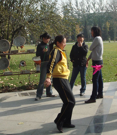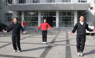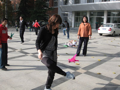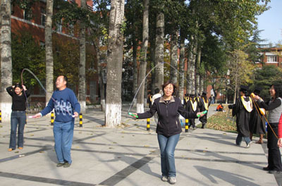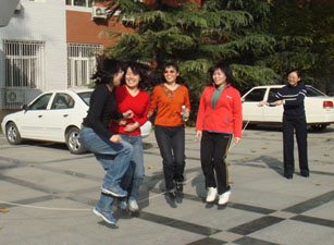 2008年11月5日中午12:45在办公楼前,经管系分工会举办了第四届跳绳、踢毽比赛。