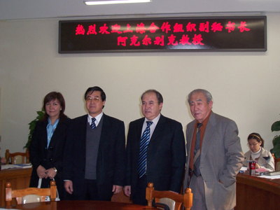 2007年10月24日下午三点,经贸系邀请了上海合作组织副秘书长阿克尔别克教授作了题为“上海合作组织经济功能”的学术报告。会前,经理王有年教授接见了阿克尔别克教授。