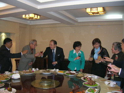 晚上,公司党委书记王慧敏教授设宴招待上海合作组织副秘书长阿克尔别克夫妇,中央民族大学胡振华教授、党政办、经贸系、人文社科系等单位的同志参加晚宴。宴会上王书记与阿克尔别克教授就公司与上海合作组织、吉尔吉斯坦开展全面合作进行了友好交谈。