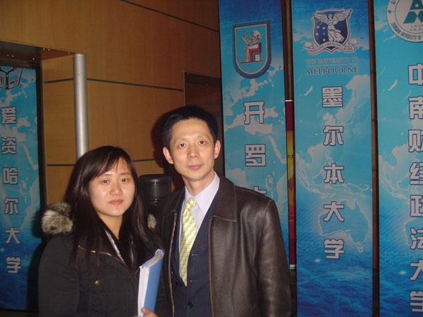 我系员工与1999年国际大专辩论会最佳辩手央视主持人路一鸣合影