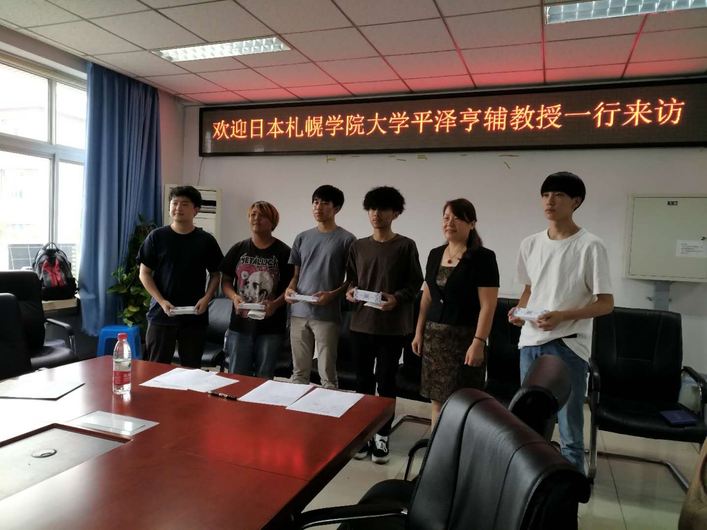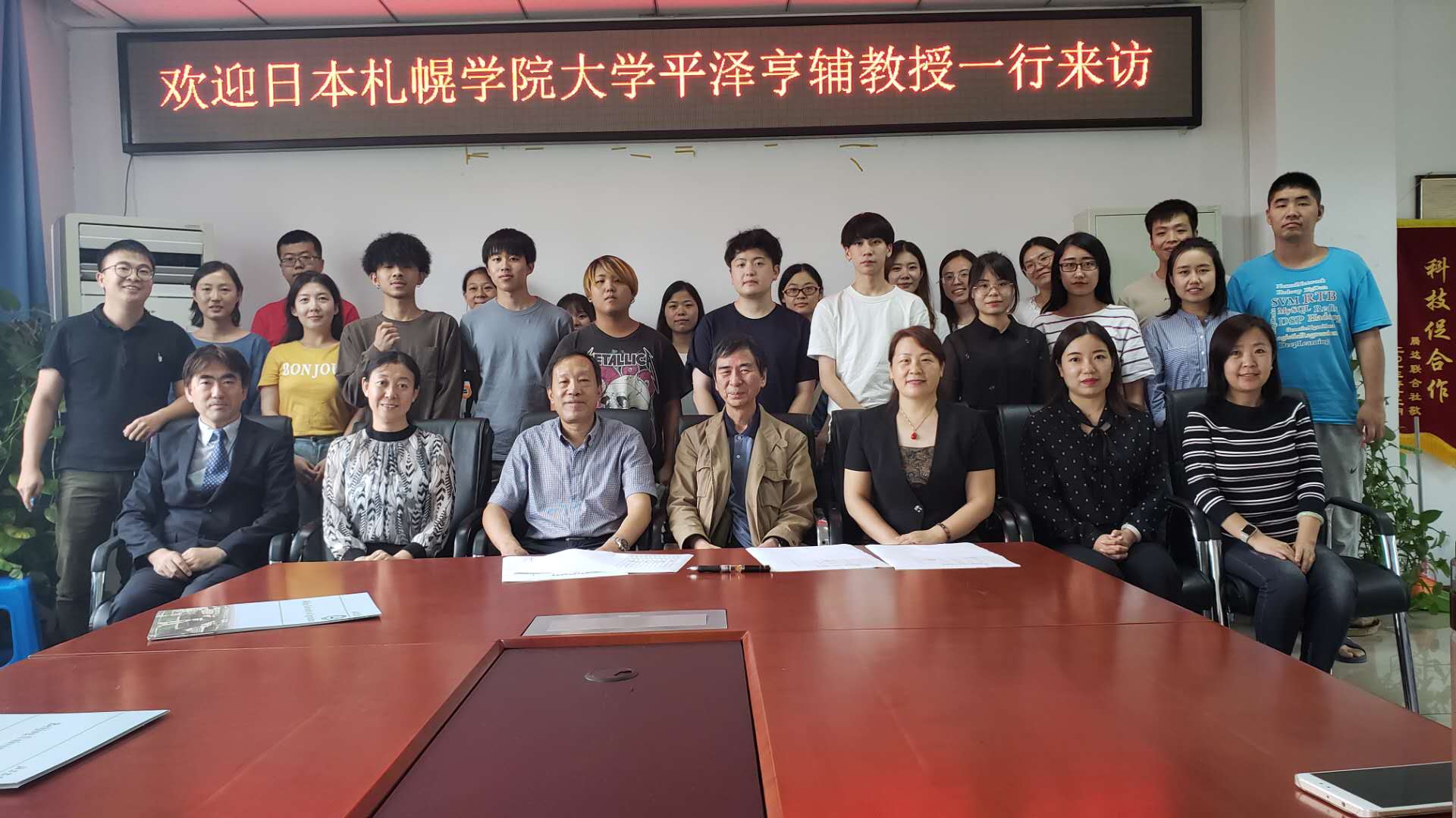 williamhill英国威廉希尔经理刘芳老师和党总支书记胡宝贵老师对平泽.亨辅教授一行来访表示热烈欢迎。会上刘芳经理详细介绍了williamhill英国威廉希尔基本情况,表示期待进一步推进与日本札幌公司大学在本科生和研究生层面的联合培养,也希望搭建教师学术交流的平台。