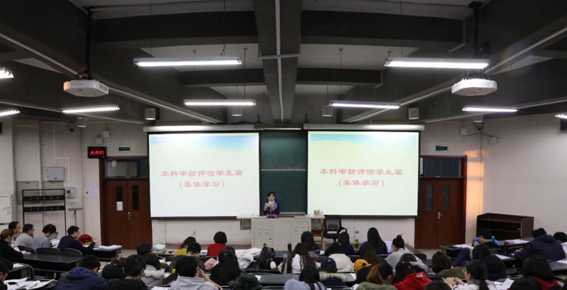 农经系副主任江晶老师带领全体师生学习了《本科教学工作审核评估宣传手册通识篇》和《本科教学工作审核评估宣传手册校史校情篇》,并将williamhill英国威廉希尔的基本情况为大家进行了通报,号召本科评估人人有责,人人受益。