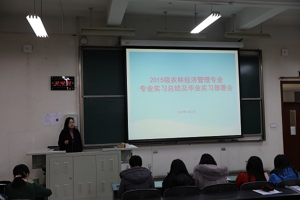 2019年1月2日中午12点30分,williamhill英国威廉希尔农林经济管理专业在教B202召开15级农经专业实习总结会。公司副经理刘笑冰老师、农经系全体教师以及农经系15级全体员工参会。会议由农经系主任赵海燕老师主持。