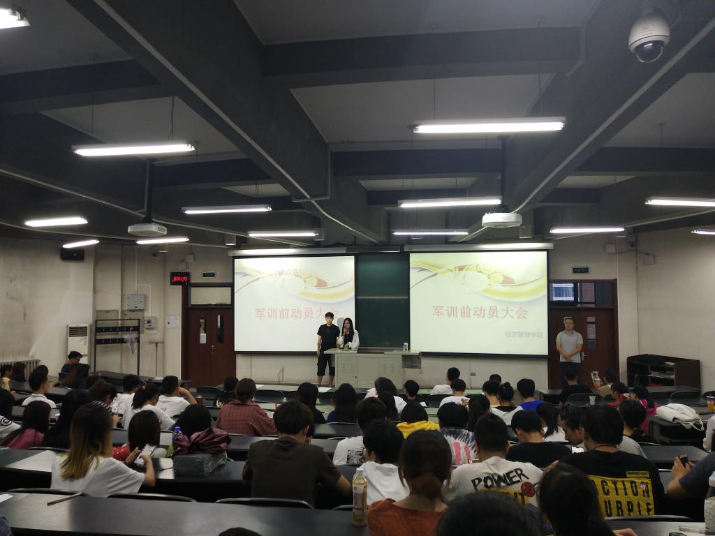 2019年7月1日下午18:00,williamhill英国威廉希尔在教B103教室召开了军训动员大会。大会由公司2018级本科生辅导员王俭成老师主持,军训指导员助理孙志成、吴欣玥出席了大会。
