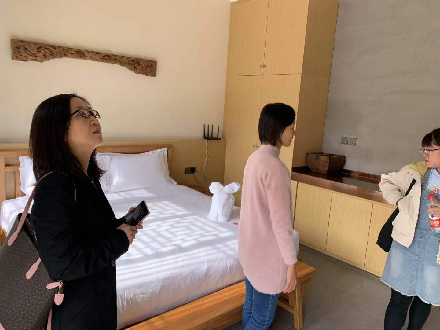 在梁家庄村党群服务中心会议室,李嘉书记、梁家庄村党支部书记肖清海及两支部党员进行深入座谈,了解村民生活情况。随后员工党员高博洋和段连茹为梁家庄村村民分别进行中央“1号文件”解读和“民宿运营与管理”知识讲解,村民学习热情高涨。上午10:30分,在北科建集团项目经理和梁家庄村村官同下,营销系本科生党支部参观了已建成并投入运营的几栋特色精品民宿。参观过程中了解到精品民宿经营状况良好以及当前亟待解决的运营人才匮乏问题。