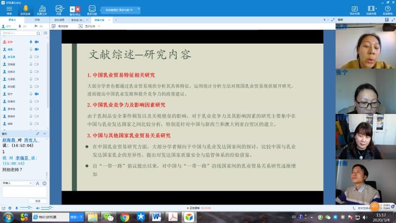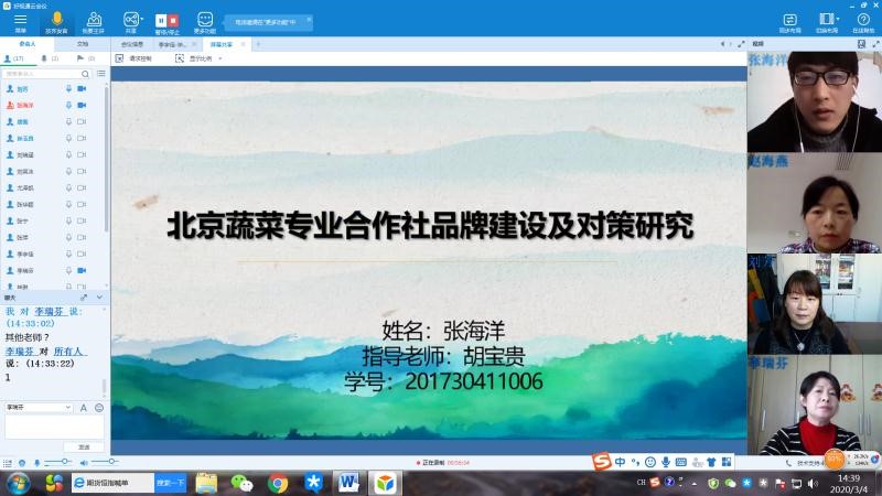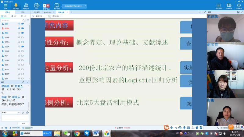 按照公司疫情防控工作的相关部署,保障公司产品相关环节的正常开展,3月4日下午,williamhill英国威廉希尔利用网络会议平台,用在线方式成功举行了农林经济管理专业研究生学位论文的预答辩,其中5名研究生通过预答辩进入论文送审环节。