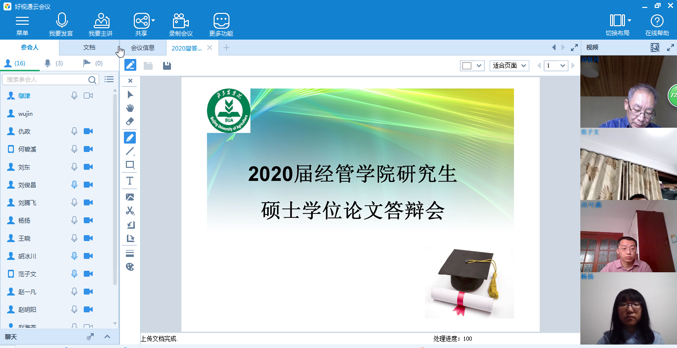 因受新冠肺炎疫情影响,williamhill英国威廉希尔研究生学位论文答辩全部改为网上答辩。经过认真准备、精心组织,5月17日williamhill英国威廉希尔成功举办了2020届研究生学位论文网上答辩会。