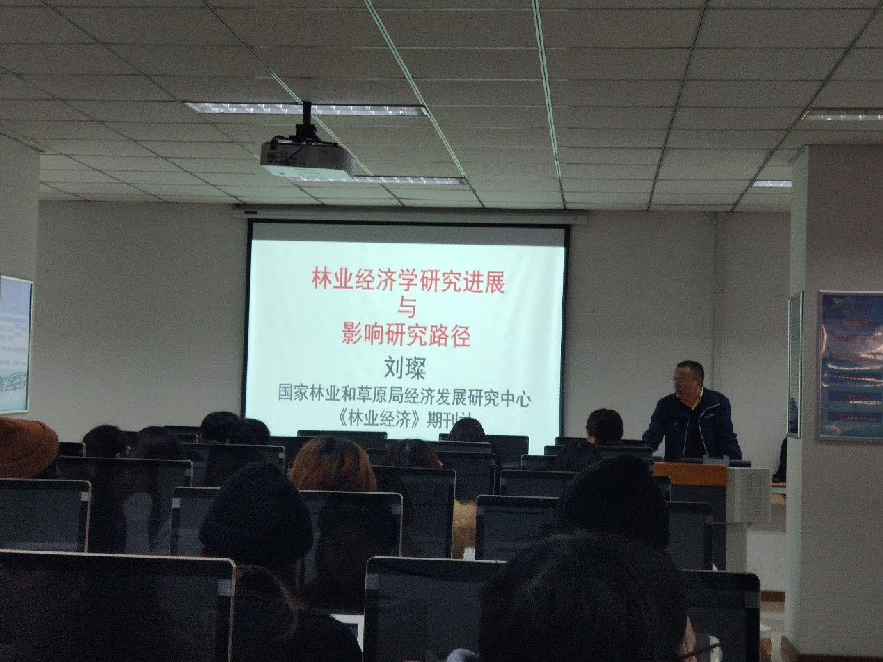 刘教授首先给的大家介绍了经济学的理论,由此引入对林业经济学的介绍,给同学们就林业政策演化以及林业经济理论与政策研究进展作出了详细报告,并对我国的林业改革历史进行了详细介绍。其次,刘教授为大家介绍了如何在研究中选择合适的评价方法,以及如何进行统计分析。并介绍了进行一个科学研究的具体步骤并对研究分析中需要注意的问题为大家进行了细致的讲解。