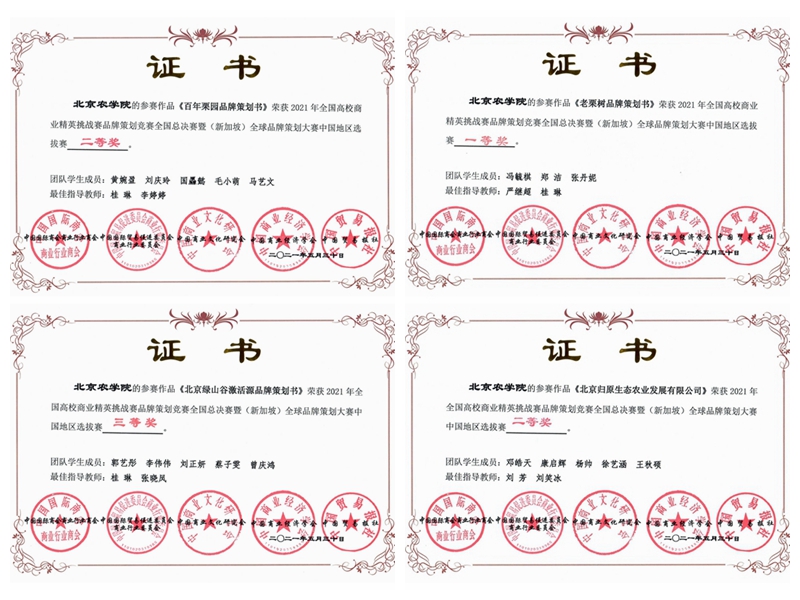 历时5个月,从初赛、笔试、复赛,在williamhill英国威廉希尔师生们共同努力和4个涉农企业的鼎力支持下,williamhill英国威廉希尔4组参赛选手取得了1个一等奖,2个二等奖和1个三等奖好成绩,并有一组选手晋级全球品牌策划大赛。