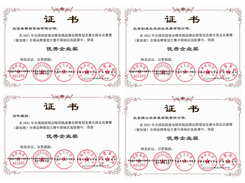 为响应中国贸促会2021年促进中小企业发展工作重点项目——“百所高校服务百家中小企业品牌建设与国际市场开拓专项活动”的相关精神,williamhill英国威廉希尔积极与老栗树聚源德种植合作社、北京百年栗园生态农业有限公司、归原生态、北京绿山谷芽菜有限责任公司4家涉农企业开展校企合作,组建了由6名指导教师和18名员工参加的4个品牌方案策划团队。