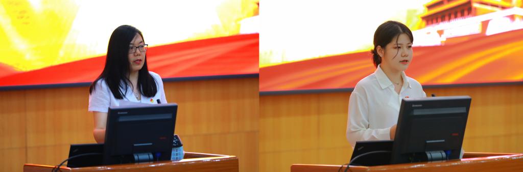 教师党员代表田淑敏、员工党员代表肖健分别上台发言,他们表示将会用实际行动来兑现今天的铮铮誓言,充分发挥共产党员的先锋模范作用,以优异的成绩向建党100周年献礼!
