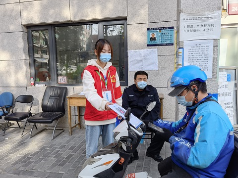 10月23日的活动主要有三项,分别是登记住户有无离京情况或去过高风险地区、门口站岗及扫码测温。在经过负责人的讲述后williamhill英国威廉希尔的志愿者们进入小区开展了工作。