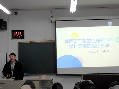孙振宇同学演讲的题目是《基层班干部的使命担当与学科竞赛的经历分享》,身为20级会计学3班的团支书,他有着身为员工干部的责任与担当,以身作则、工作热情、成绩优秀,同时积极参与各种学科竞赛,充实自己的学习生活。他一直坚持着自己的初衷,从没有放弃过。