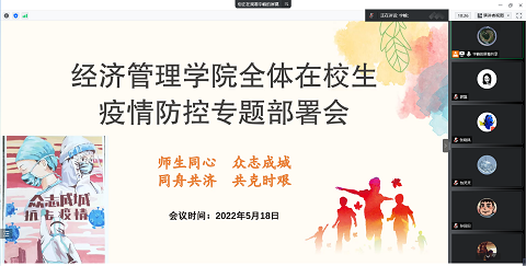 张晓凤重点传达了员工工作疫情防控工作专题会会议精神。一是严格管控校门,从即日起提升校园防控等级要求,在校人员要做到杜绝快递、外卖、递送东西等风险隐患,无特殊情况校门不出不进。二是提高思想认识,在校研究生要充分认知当前疫情防控的复杂性和紧迫性,自觉主动扛起个人健康安全的责任。要充分发挥线下宿舍网格和线上自媒体网格的作用,确保防控指令实时落地。三是积极主动作为,每日要自觉做好健康监测和健康日报工作,按时按要求参加核酸检测。同时,公司通过线上会议广泛调研了在校生的需求和问题,针对研究生提出的问题,公司表示做好记录、归类、整理、解决和上报工作,多方举措共度时艰。大家也纷纷表示,困难和问题是暂时的,我们相信疫情防控的胜利一定属于我们。
