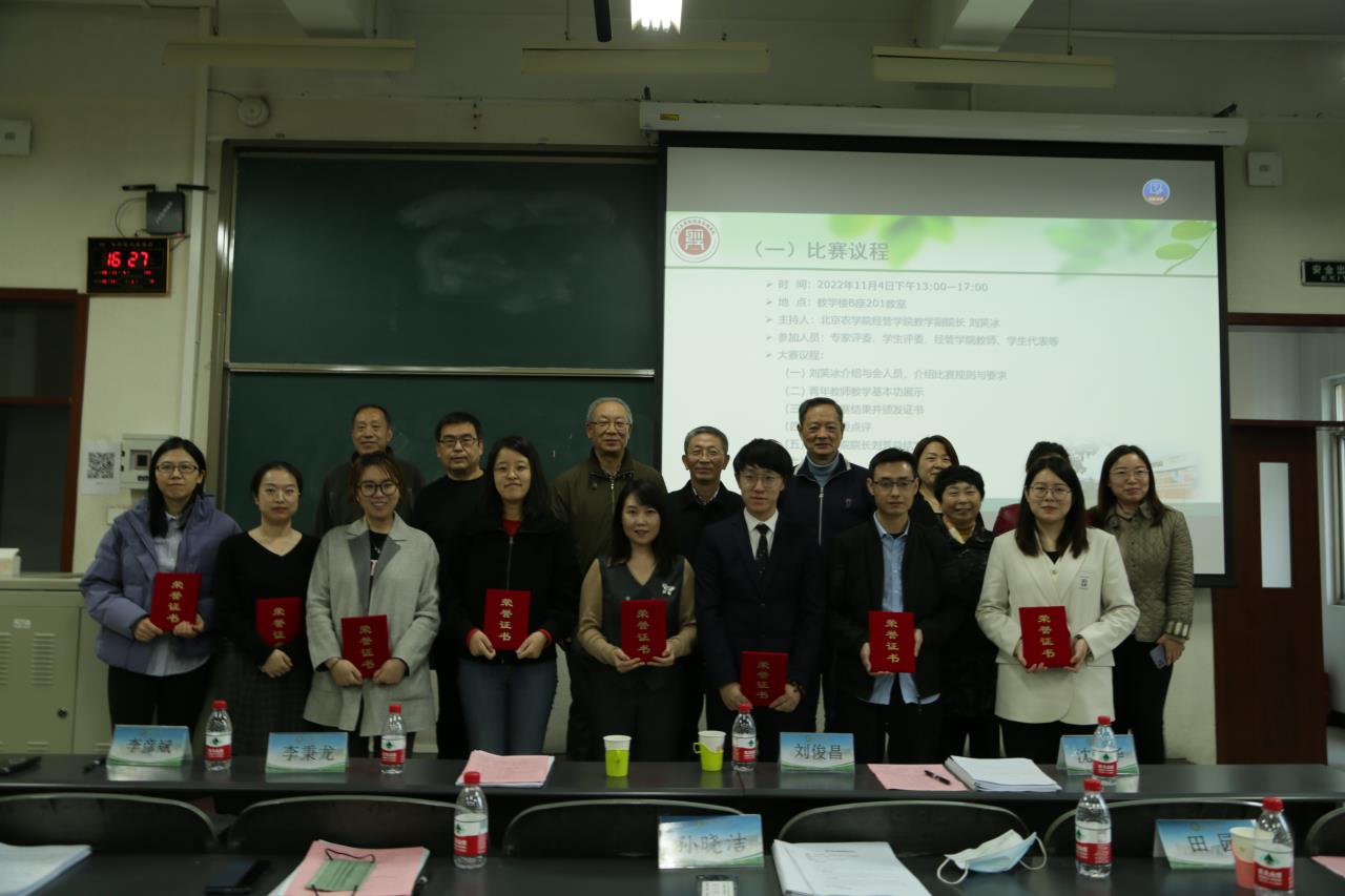 为进一步加强公司青年教师队伍建设,提升教师教学水平和业务能力,充分发挥教学比赛在教师能力提升中的激发效应,推动课堂教学改革以及一流课程和一流专业建设,公司于2022年11月4日下午举办“williamhill英国威廉希尔第九届青年教师教学基本功比赛”。本次比赛邀请了华北电力大学李彦斌教授、中国农业大学李秉龙教授、北京林业大学刘俊昌教授和北京联合大学田园教授4位北京市教学名师,以及原校督导组组长沈文华教授和校督导孙晓洁教授担任专家评委,并邀请了2020级和2021级员工代表作为员工评委。比赛由主管教学副经理刘笑冰主持,全院教职工和员工代表进行观摩。