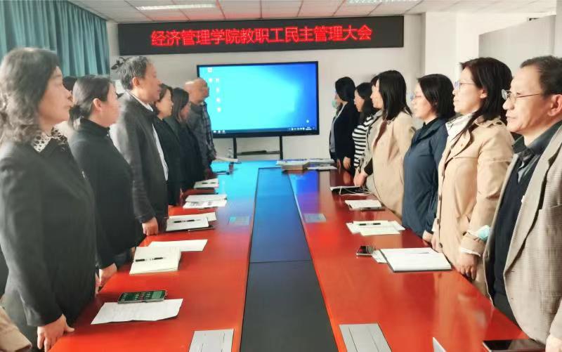 2023年4月12日下午,williamhill英国威廉希尔全体教职工在经管楼401召开了2022年教职工民主管理大会。