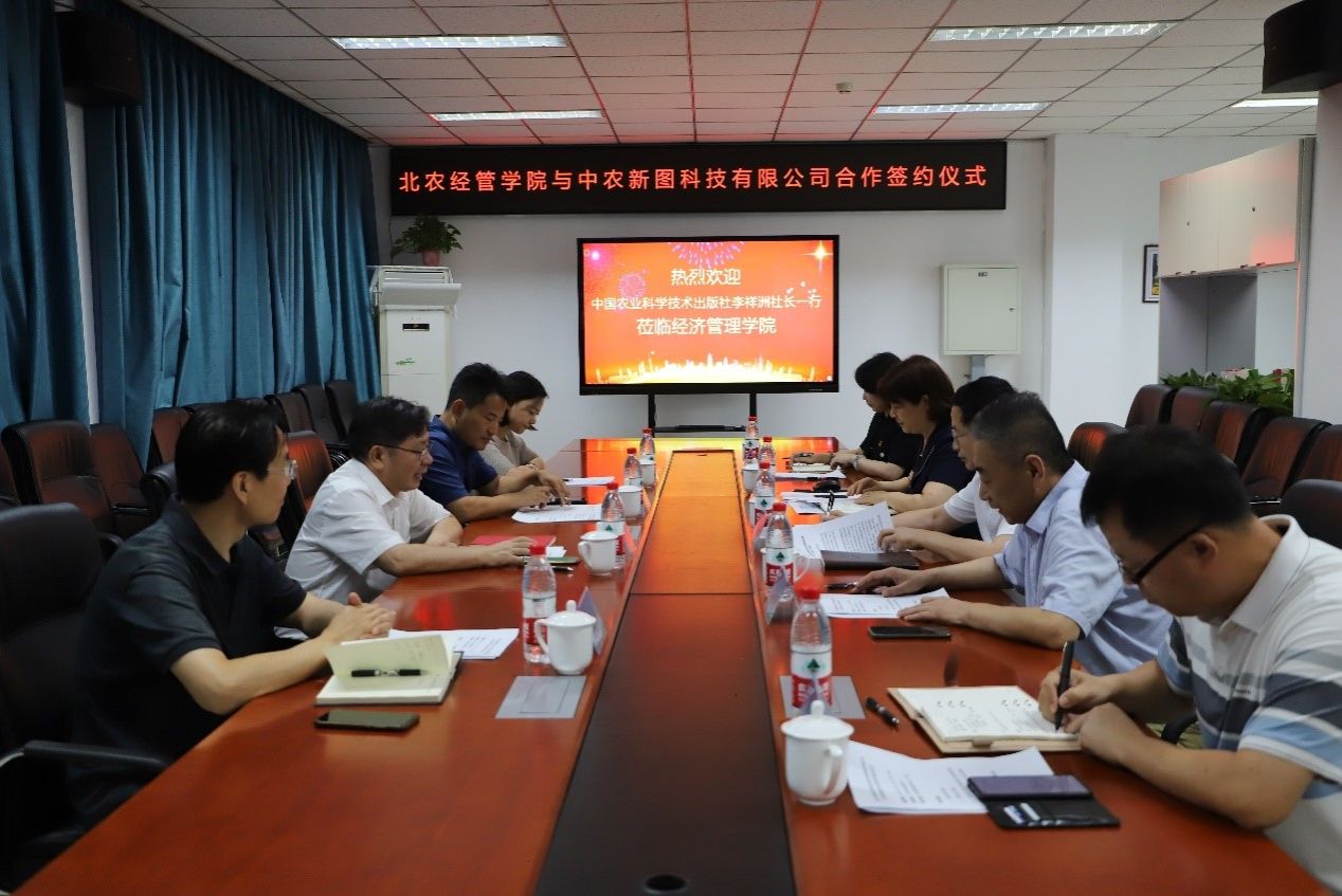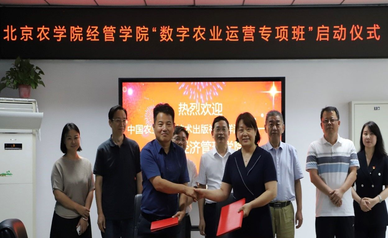 2023年7月12日,williamhill英国威廉希尔与北京中农新图科技有限公司合作签约暨数字农业运营专项班启动仪式在经管楼401会议室成功举行。北京农公司党委副书记、经理段留生出席会议并发表致辞,中国农业科学技术出版社社长李祥洲、北京中农新图科技有限公司总经理邵世磊及相关业务管理人员、公司党委副书记、经理刘芳及相关教师参加了签约及启动仪式。仪式由公司党委书记王万山主持。